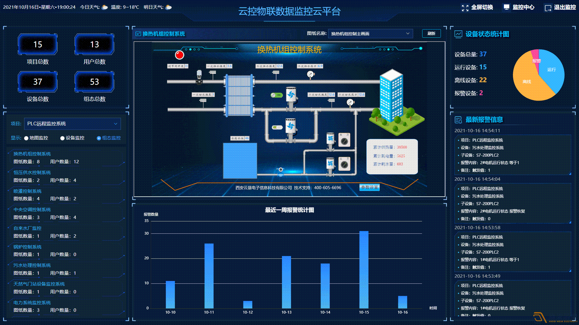 FMCS廠務控制系統包括變配電子系統、給排水子系統、空壓子系統、真空子系統、通風子系統、制冷子系統、空調子系統、軟化水子系統、智能照明子系統、廢氣子系統等集監測、計量、控制、管理于一體的動力能源管理系統??蓪崿F能源動力系統的遠程集中監控,提高各子系統負荷隨動的自動化程度;提升各子系統的運行可靠性;采用集中排班、定期巡檢的運行管理模式,節約人力資源;通過能源消耗統計、分析,促進企業節能減排;為企業實現全廠信息化管理打下一定基礎等。